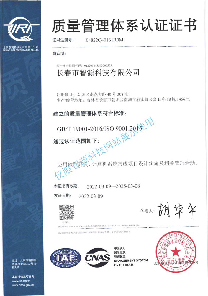 当前位置:首页 » 荣誉资质» 质量管理体系认证证书