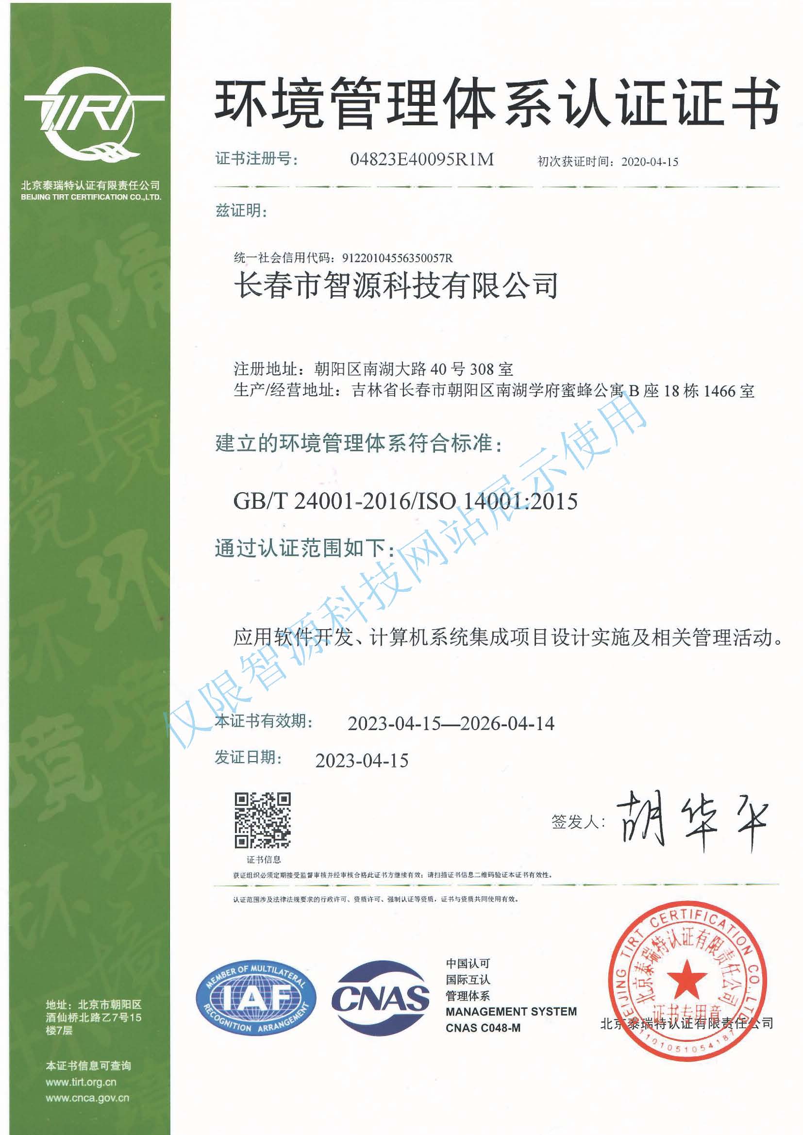 环境管理体系认证证书